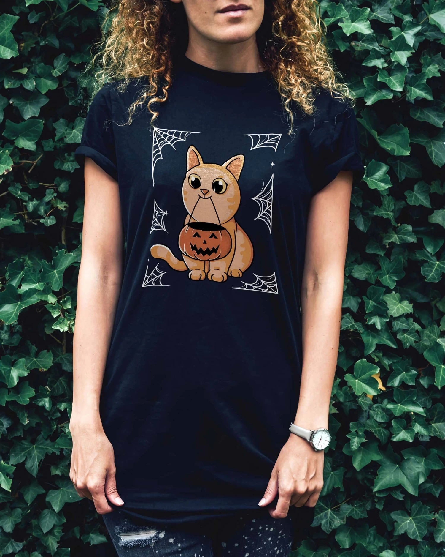 Ce chat est prĂŞt pour Halloween ! Sur ce t-shirt Challoween, comment ne pas donner quelques croquettes Ă ce minou qui tient une petite citrouille d’Halloween dans sa gueule. Pour t’accompagner pendant ta soirĂ©e du 31 octobre craque pour ce t-shirt trop mignon.