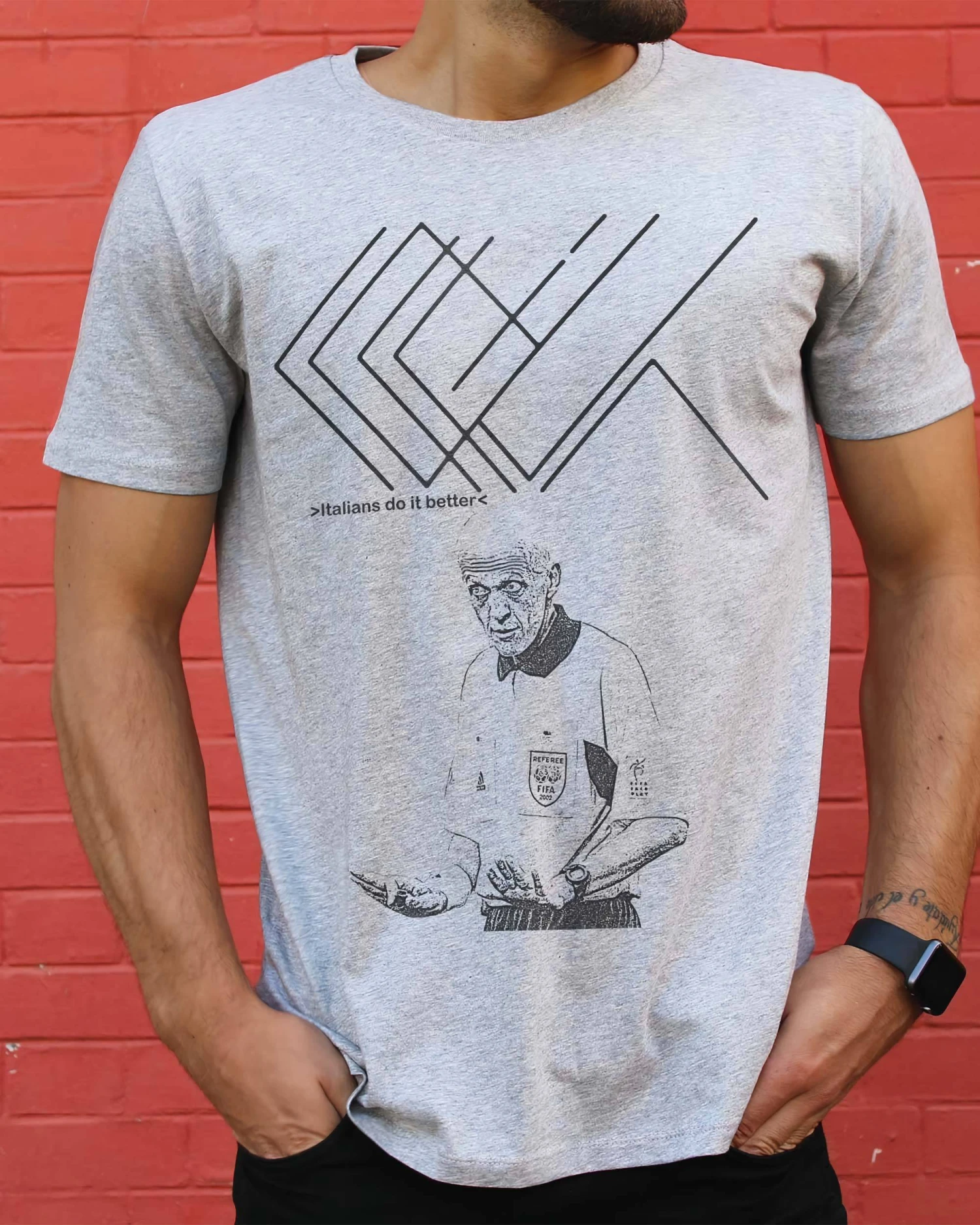 T-shirt saluant notre Kojak préféré, l’arbitre considéré comme le meilleur de sa génération : Pierluigi Collina !