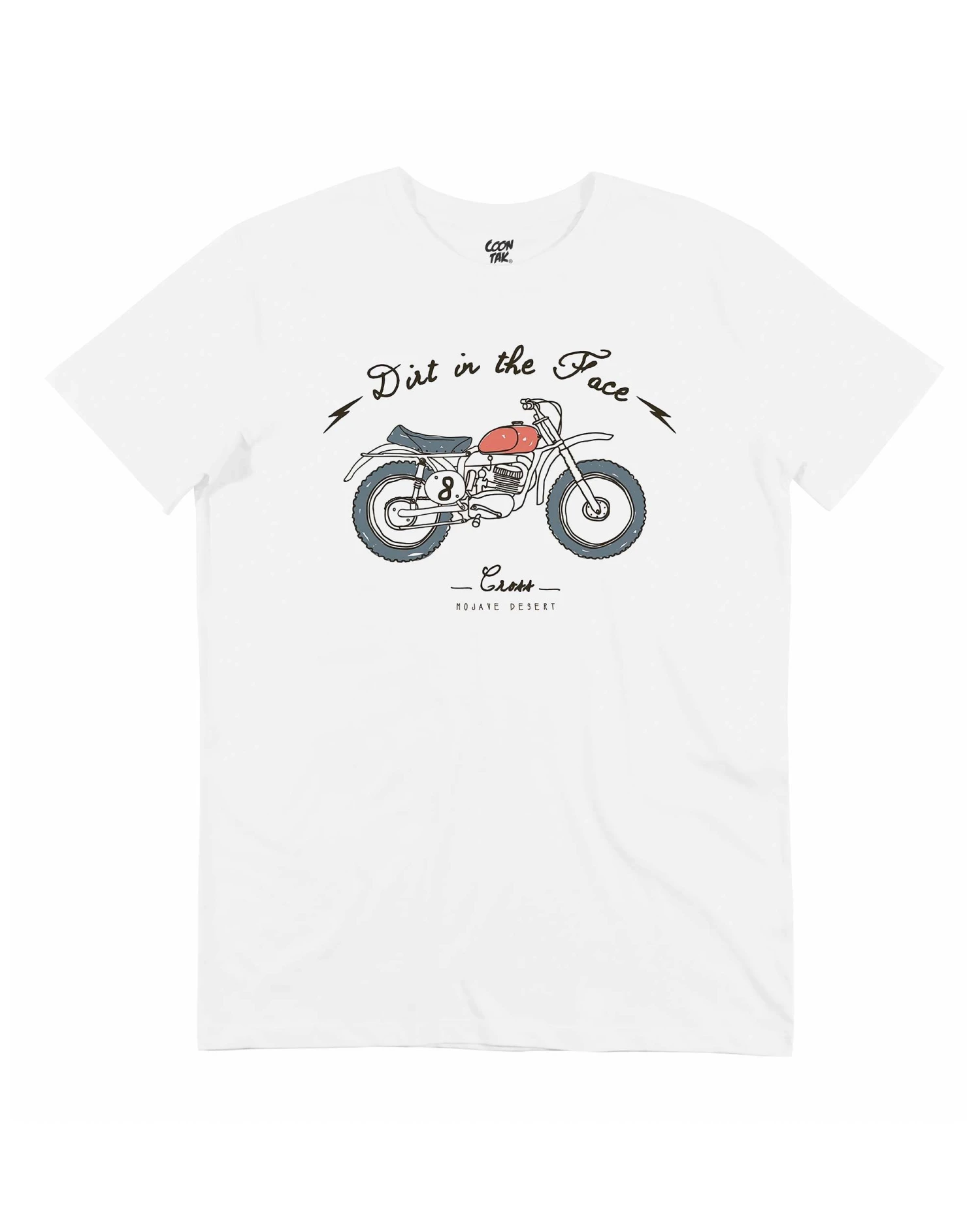 Coontak va faire sortir cette âme de biker qui sommeille en vous. Enfourchez la moto cross numéro 8, réservoir rouge. Et c’est parti, foncez à travers le désert, avalez les kilomètres plus vite que tout le monde, mettez leur votre terre dans le visage. Un t-shirt blanc, à col rond, en 100% coton et 100% biker.