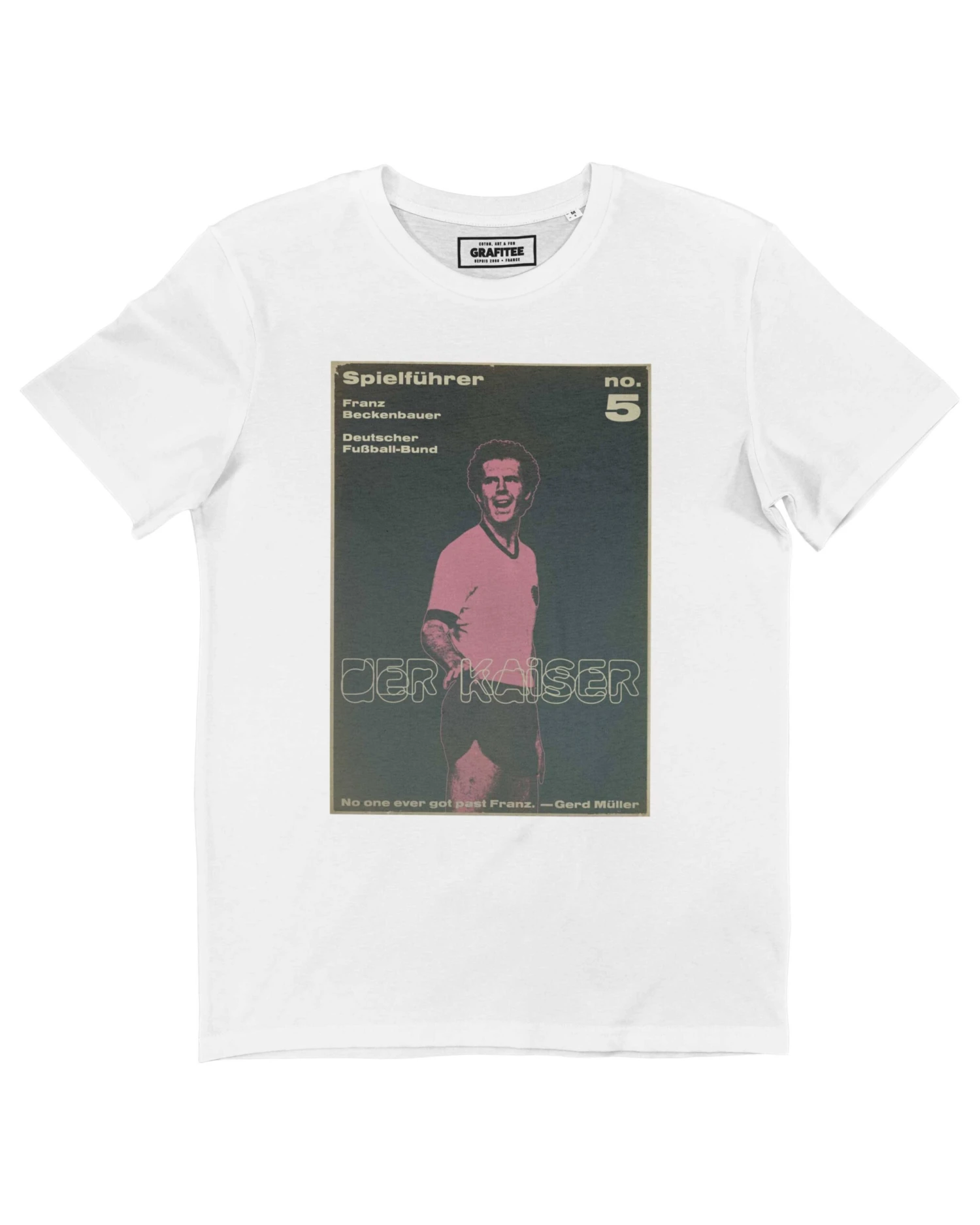 Bel hommage au joueur de football Franz Beckenbauer, surnommé « Der Kaiser » et dieu vivant du football dans les années 70. Illustration à l’esthétique old-school pour petit effet vintage bien cool. Tailles du S au 2XL.