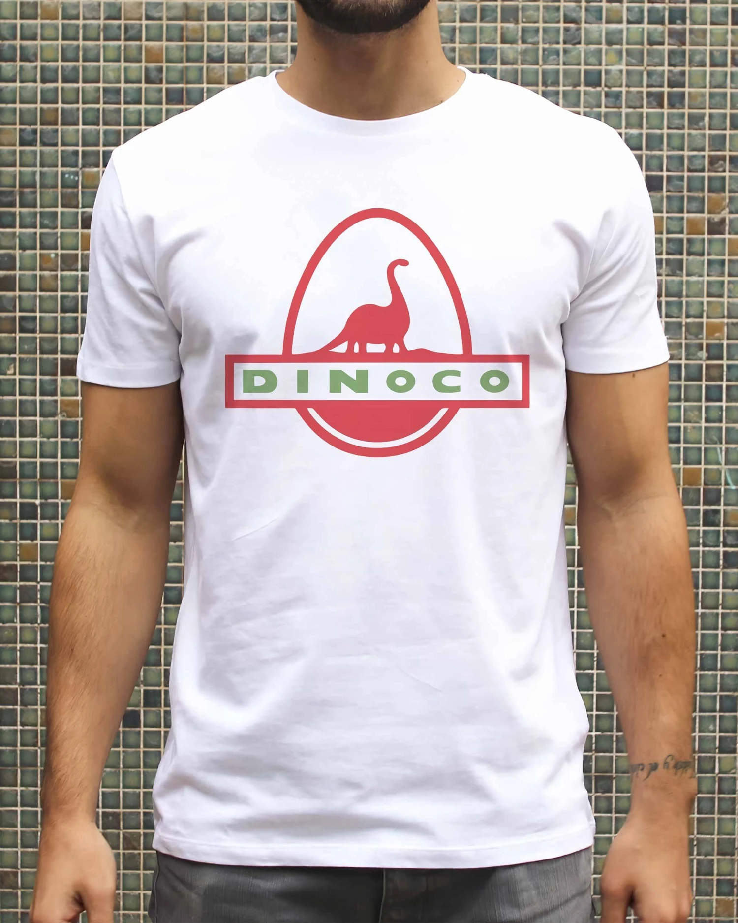 T-shirt original en référence à la station service Dinoco, dans laquelle Woody et Buzz se battent après être tombés de la voiture d’Andy. Tu est fan de Toy Story et des dinosaures ? Tu es notre ami.
