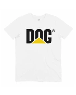 T-shirt Dog, détournement du logo Caterpillar pour ceux qui sont plus chiens que chats. Tee-shirt original avec une impression numérique en couleurs. Coupe homme disponible en plusieurs tailles. Du extra small au triple XL. Equipe toi du logo de la Dogerpillar.