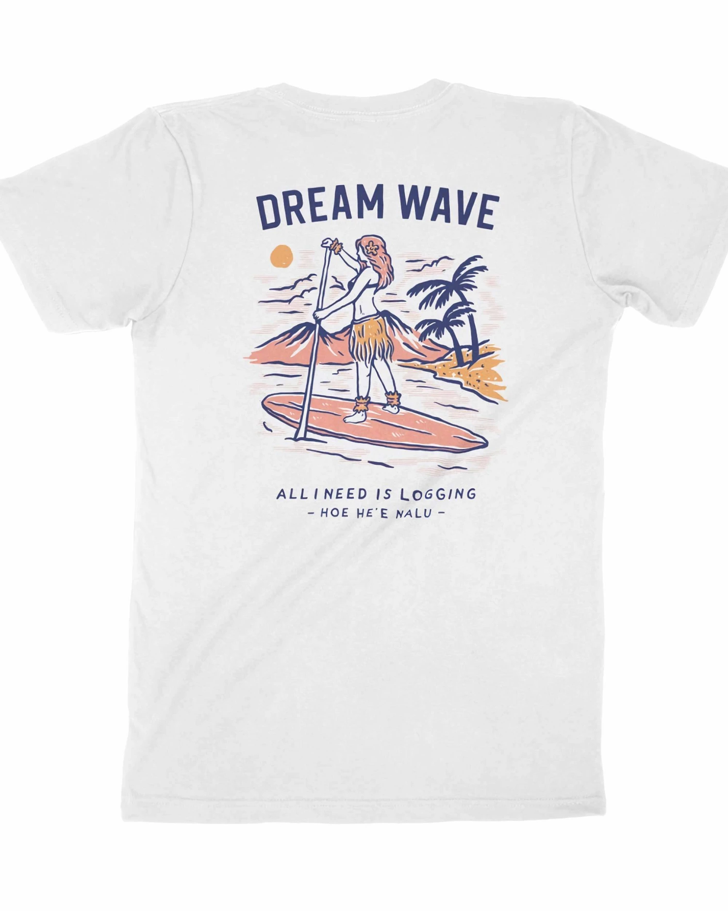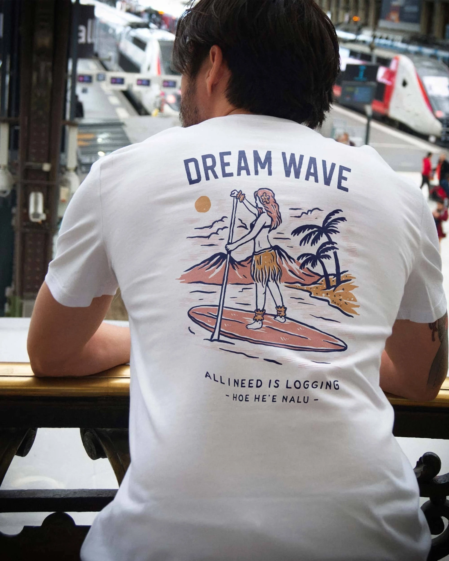 A la recherche de la vague parfaite à prendre sur ton longboard ? Ce t-shirt Dream Wave sent bon l’été et sera parfait à porter en vacances au bord de la mer. « hoe he’e nalu » est le mot hawaïen pour désigner une planche de surf. D’où la surfeuse en tenue traditionnelle hawaïenne sur cette illustration.
