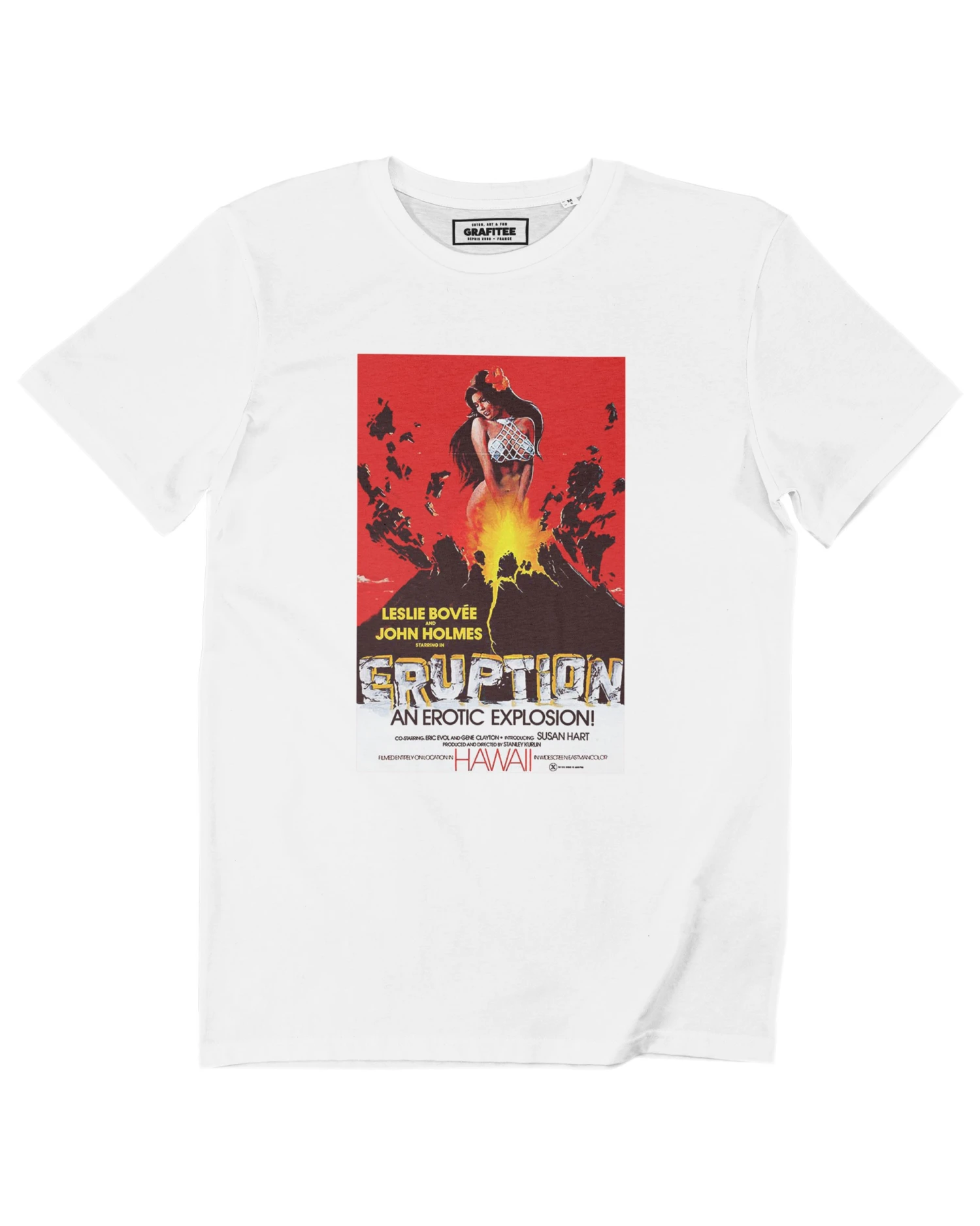 Hawai, de belles vahinées, un agent d’assurance, nous avons là la recette parfaite d’un bon film érotique kitsch des années 70. Et porter ce tshirt c’est l’assurance d’avoir une éruption de style.