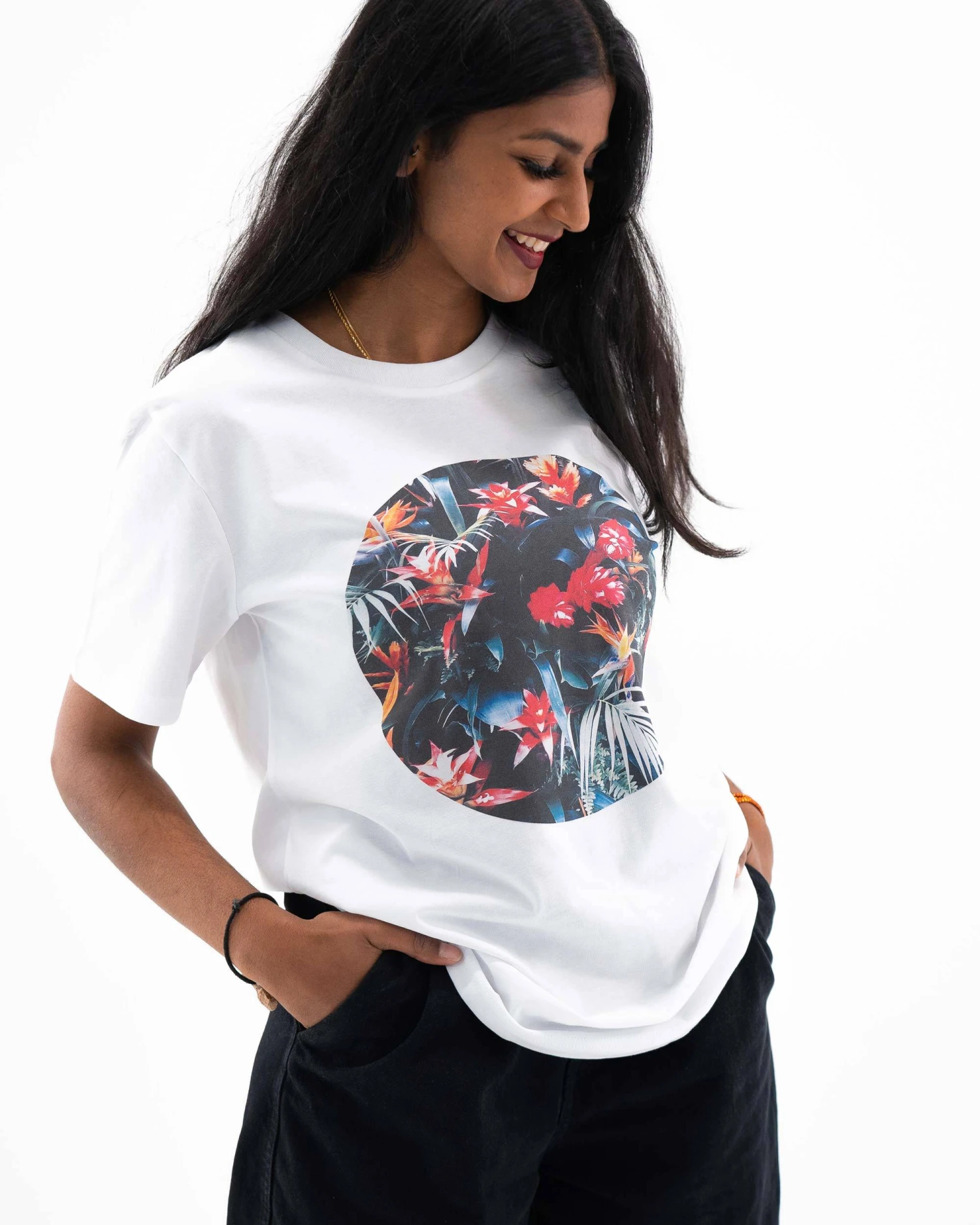 - 100% coton bio : nos t-shirts sont exclusivement fabriqués en coton biologique d’Inde, cultivé et traité de manière responsable, sans nuire aux personnes, aux animaux et à l’environnement.