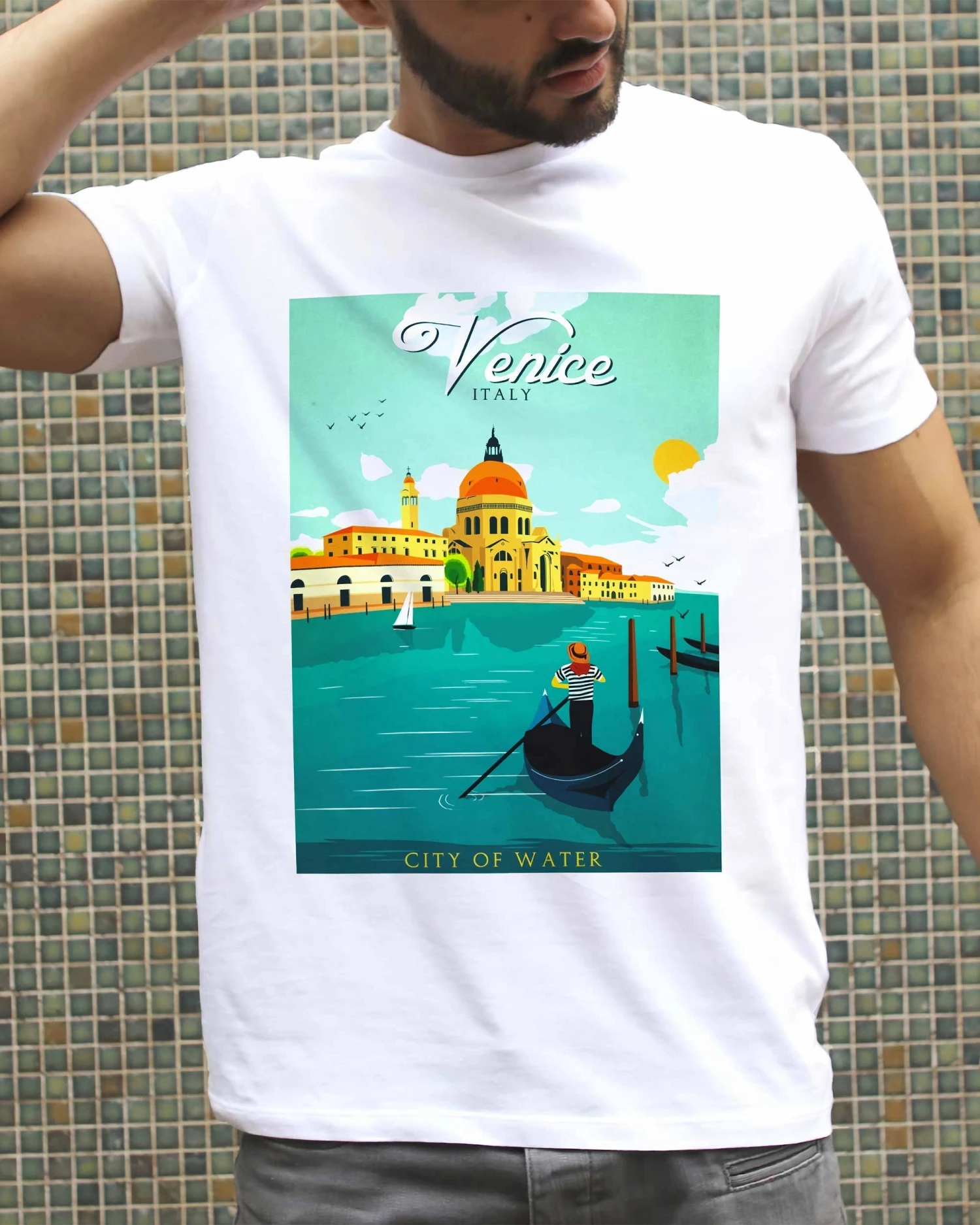 Les gondoles à Venise, qui peut s’en passer ? Certainement pas toi. Offre-toi ce t-shirt imprimé d’une charmante illustration de Venise et d’un gondolier sur sa gondole. Imprimé sur un t-shirt 100% coton biologique disponible du XS au XXXL. Craque et achète-le pour toi ou pour l’offrir à un pote.