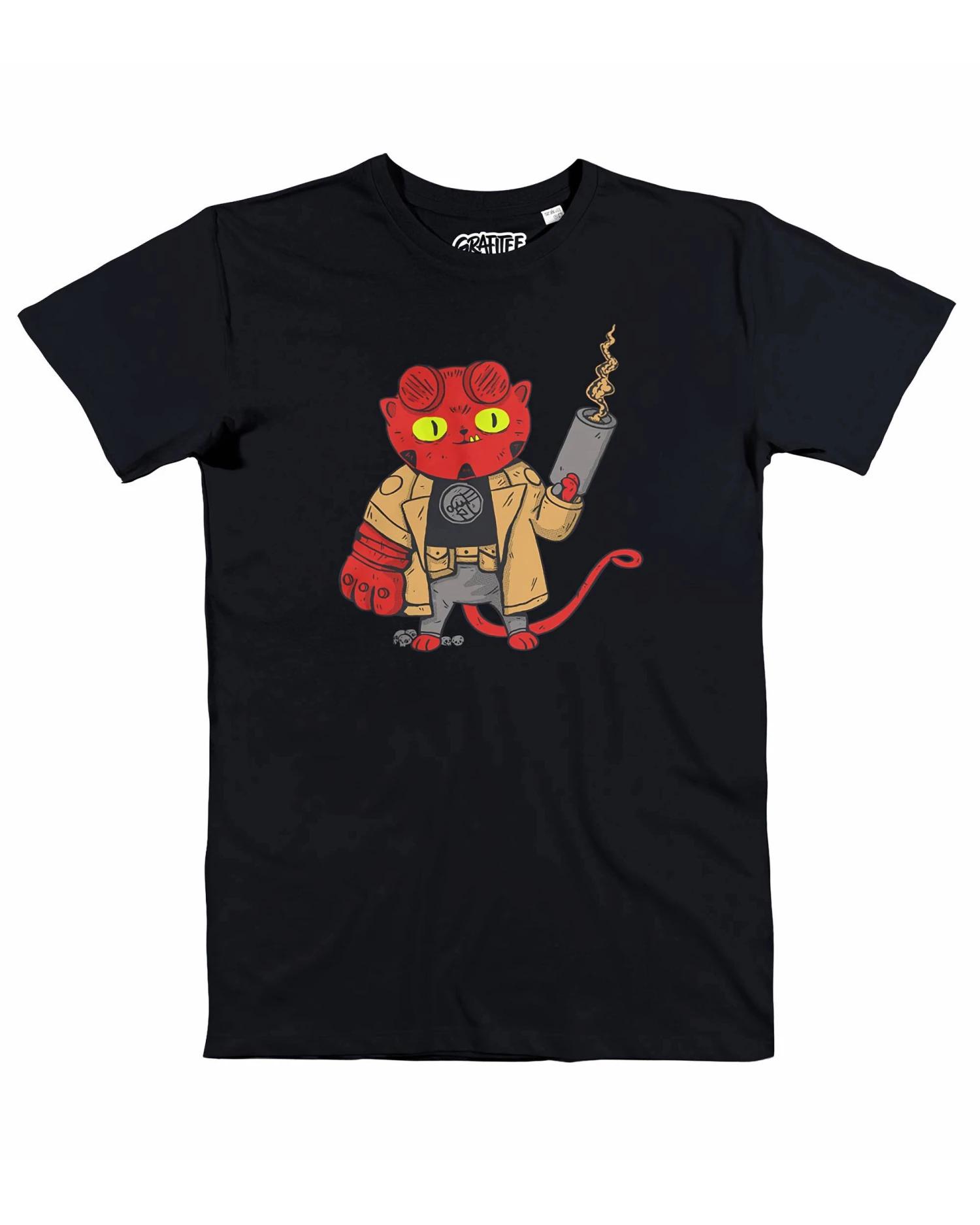 Si tu aimes la bande-dessinée ou les films Hellboy et les illustrations drôles avec des chats, ce t-shirt devrait te plaire.