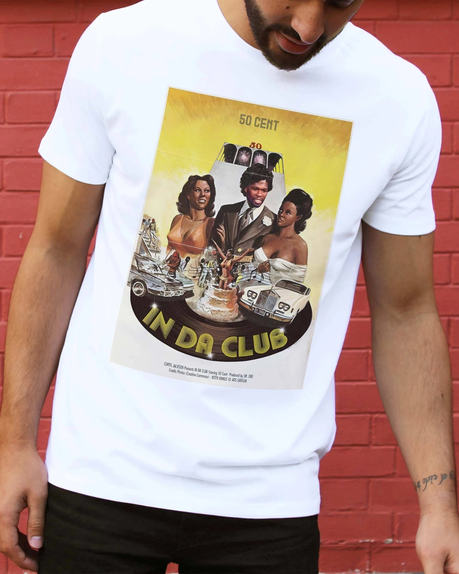 Un T-shirt bien cool inspiré du tube interplanétaire In Da Club, produit par Dr. Dre et sorti en 2003. Modèle 100% coton du S au 2XL. Coupe homme ; taille normalement.