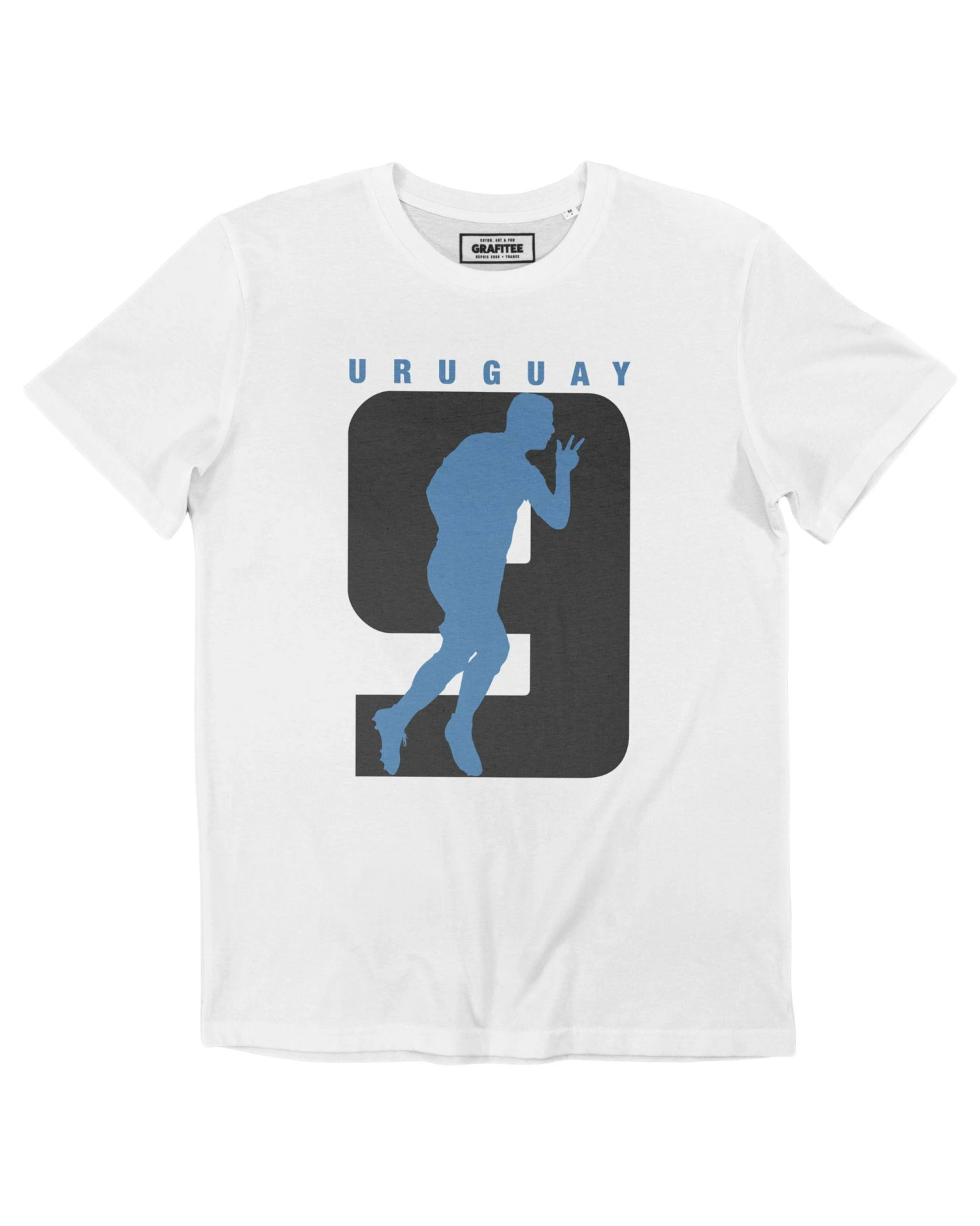 L’incorrigible Luis Suarez en pleine célébration après avoir marqué un but pour l’équipe de football de l’Uruguay. T-shirt marqué en impression numérique, matière 100% coton. Tailles en stock du S au 2XL.