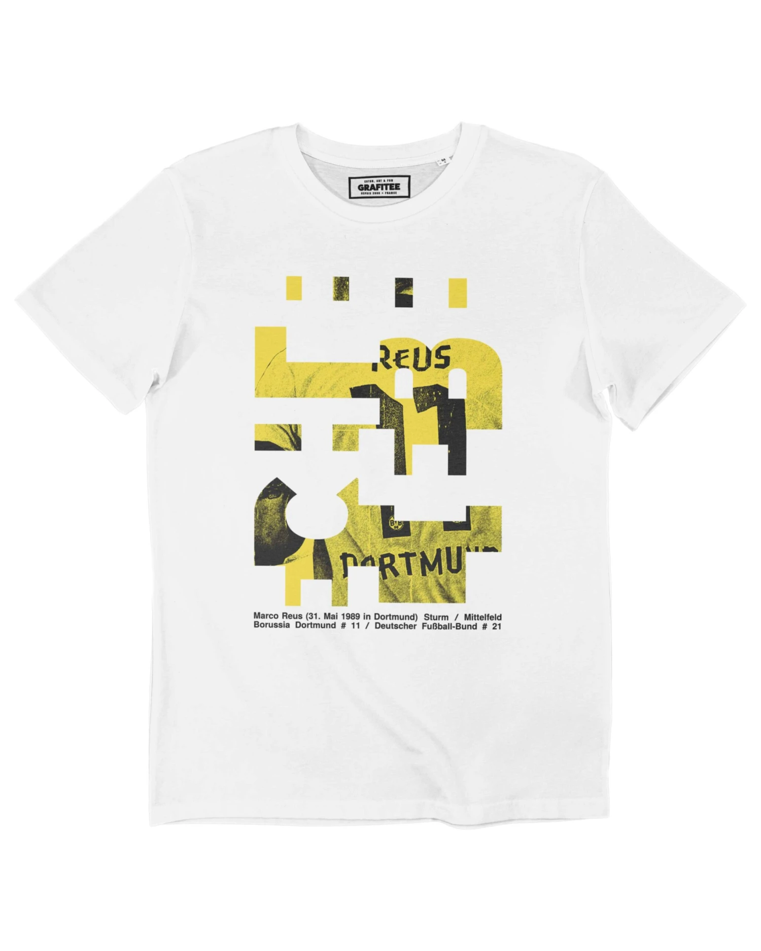 Joli concept graphique autour de Marco Reus, ce joueur de football allemand toujours resté fidèle à son club de naissance, le BVB Dortmund. Haut à manches courtes, coupe standard, composition 100% coton.