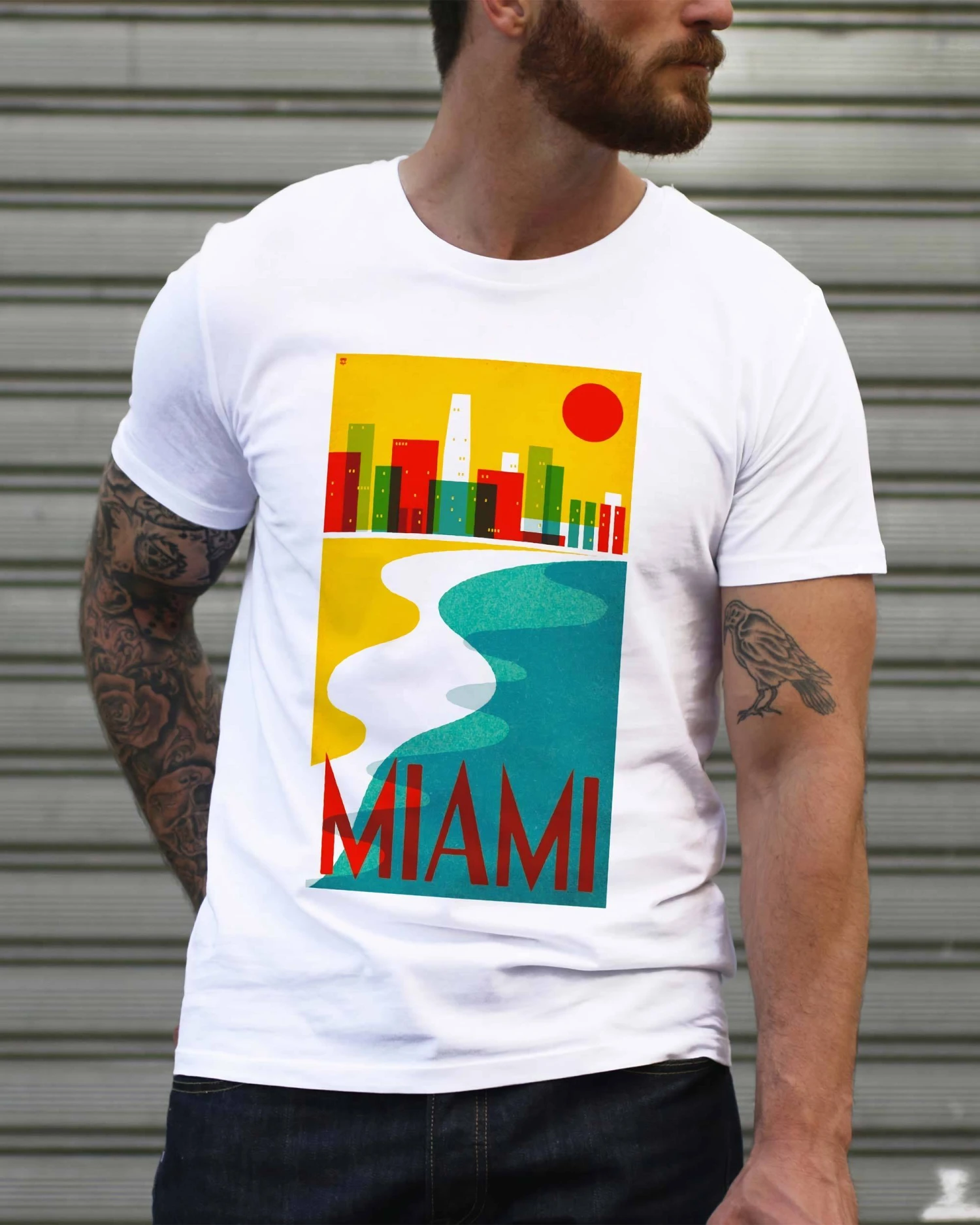 En toute simplicité, avec un visuel design et minimaliste, ce t-shirt de Miami te donnera la pêche. Coupe droite, col rond, manches courtes. Couleur: disponible en blanc et en gris. 100% coton.