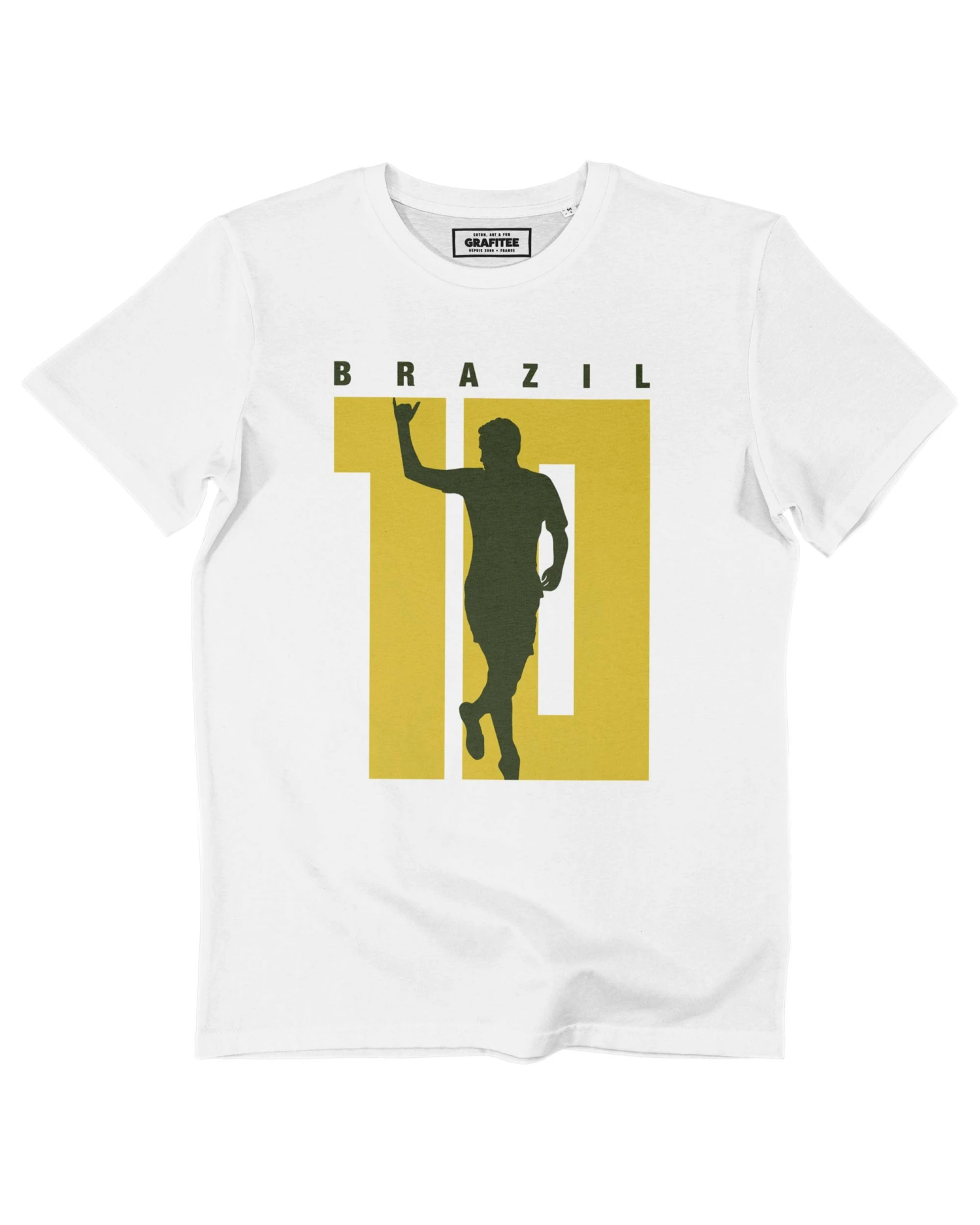 Neymar Jr. et son fameux shaka, sous le numéro 10 de l’équipe nationale brésilienne. Illustration en bold design avec du bon jaune vif, histoire qu’on te voit bien à la télé dans ta tribune.