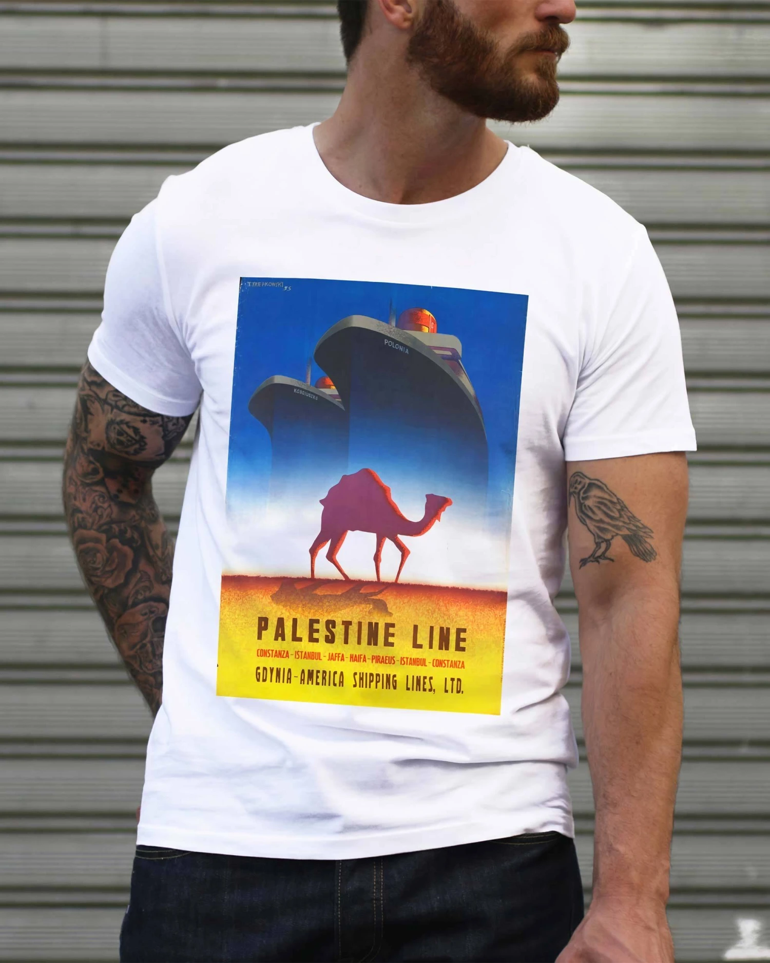 Les prémisses de la mondialisation parfaitement illustrées sur ce T-shirt inspiré d’une vieille (et authentique) affiche de publicité pour les lignes maritimes de Méditerranée. Un visuel rétro pour un look branché, sur un Tee-shirt de première qualité.