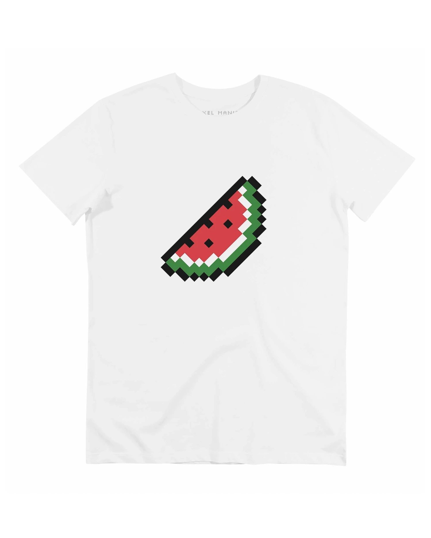 Look fruité en vue avec ce T-shirt imprimé d’une grosse tranche de pastèque illustrée en pixel art ! Modèle décliné dans toutes les tailles et en plusieurs couleurs, pour un bon petit style tout en fraîcheur.