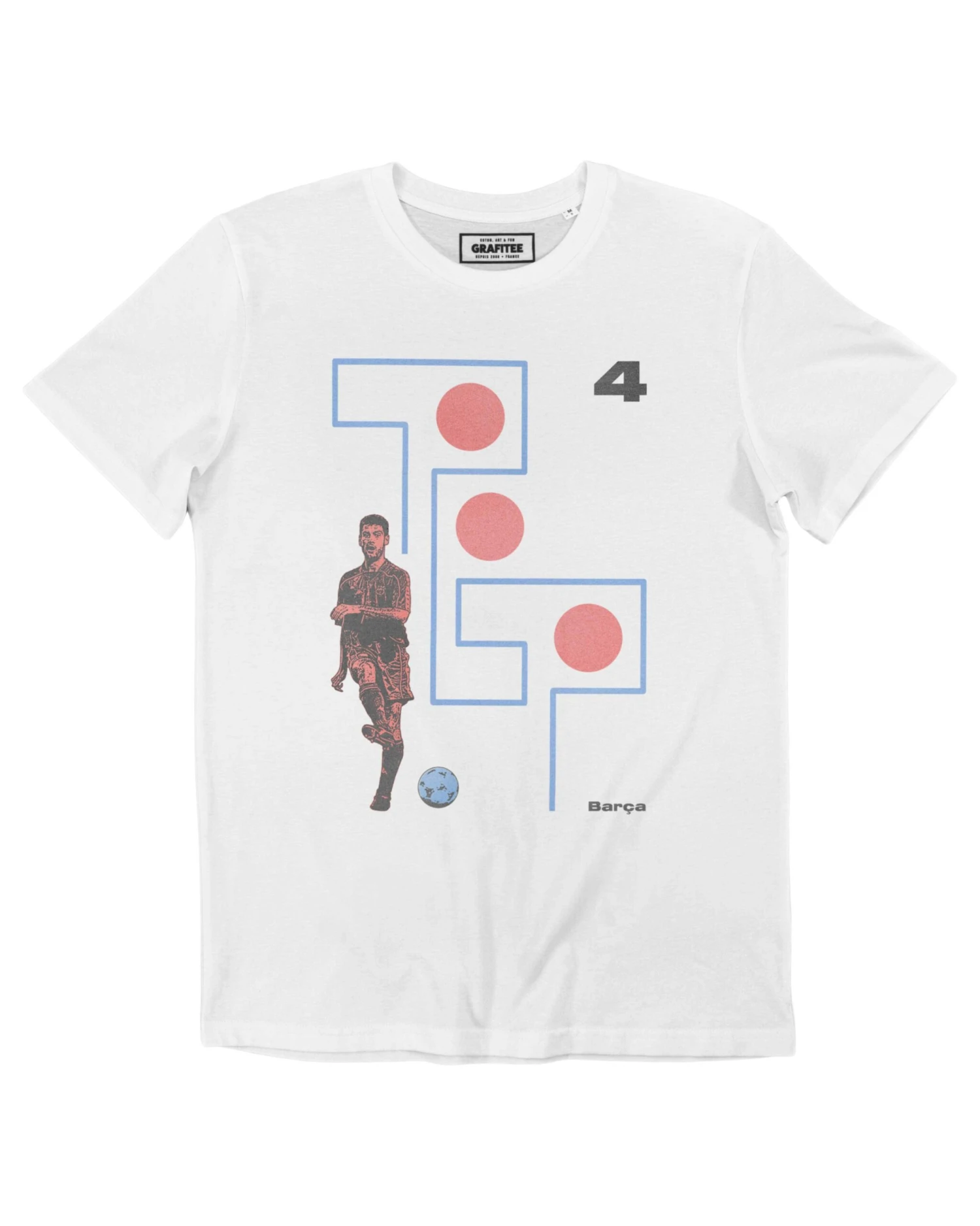 Ce T-shirt rend hommage à la carrière de Pep Guardiola en tant que défenseur central du Barça pendant de nombreuses années. Avant l’entraîneur il y a surtout un grand numéro 4, solide et sur lequel son équipe pouvait se reposer.
