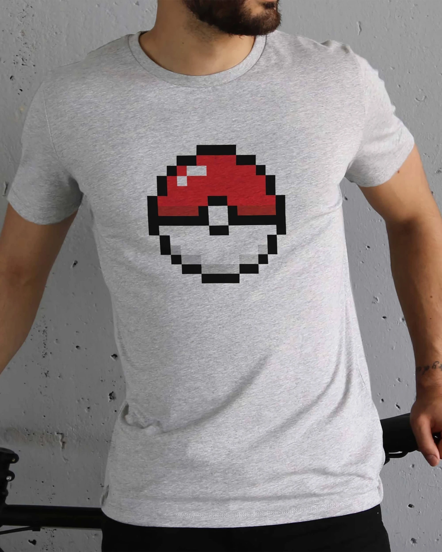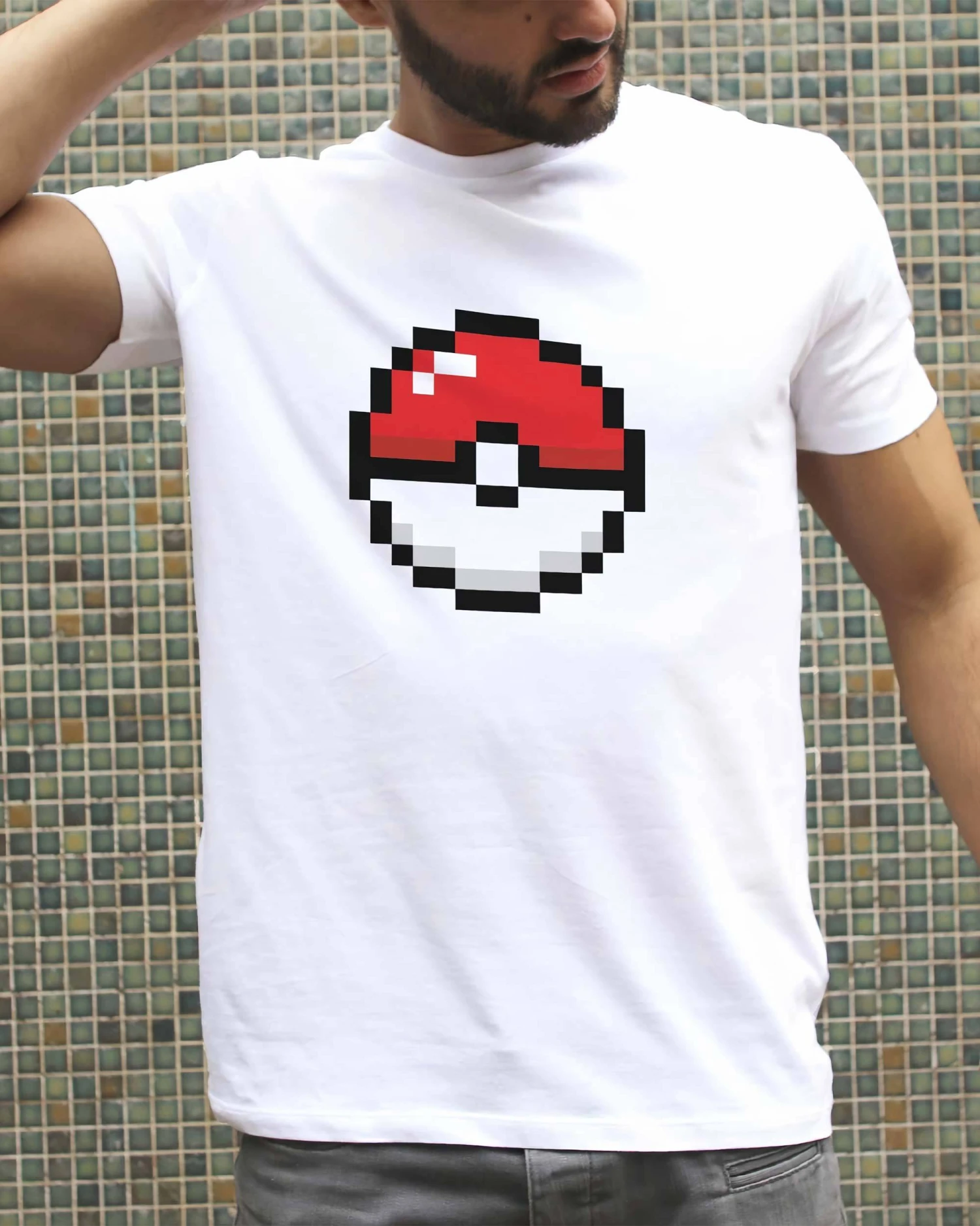 Le T-shirt pour tous ceux qui ont joué à Pokémon quand ils étaient petits ! (inutile de te planquer). Illustration de la légendaire Poké Ball en pixel art pour un look over geek et coloré.
