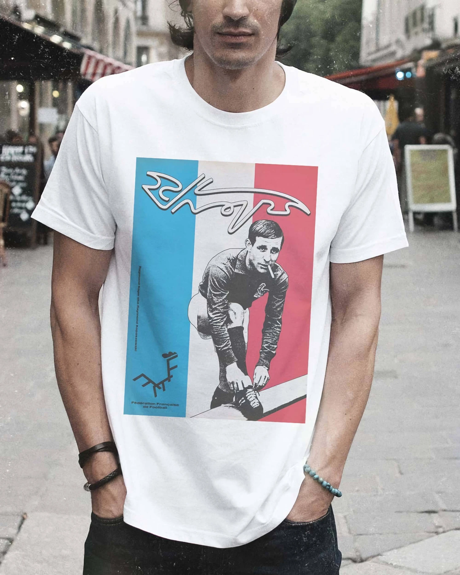 Raymond Kopa, le Napoléon du Football, parfaitement mis en scène par l’artiste Zoran Lucic, pour tous les fans de foot et de légendes françaises. En fond, le drapeau bleu blanc rouge pour un rendu vintage et coloré. Grafitee approved.
