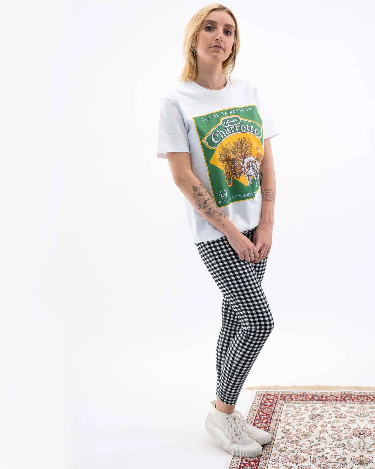 T-shirt imprimé avec l’étiquette du rhum blanc de l’île de La Réunion : la fameuse charrette remplie de cannes à sucre tirée par un bœuf. Une petite douceur vintage de 49° à porter été comme hiver pour faire honneur au 2ème rhum le plus vendu en France ! T-shirt 100% coton, à commander du XS au 3XL.