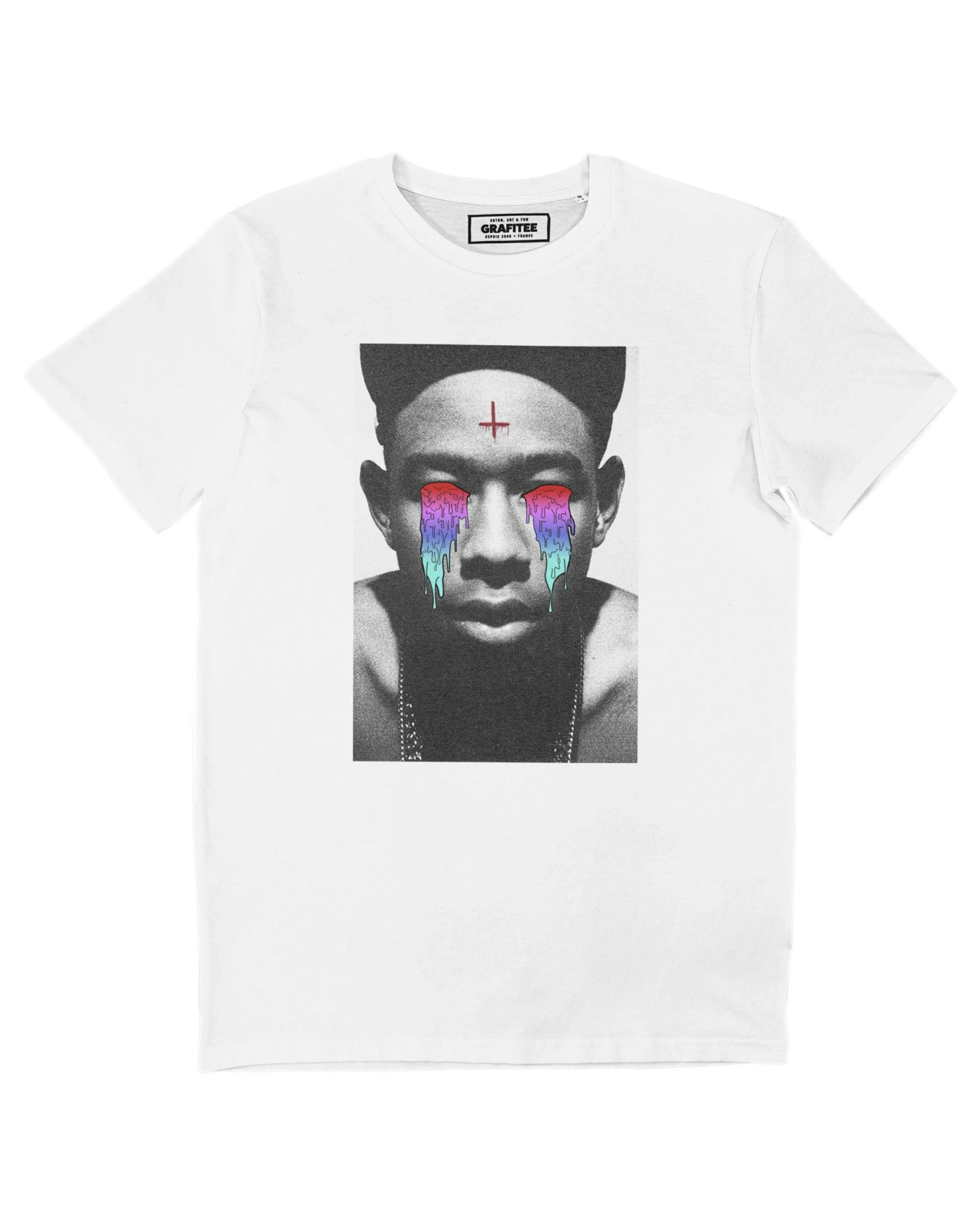 Le trublion du groupe de hip-hop Odd Future — Tyler The Creator — illustrĂ© façon #GrimeArt Ă partir d’une photo de l’album Goblin (Deluxe Edition), sorti en 2011. T-shirt au graphisme bien cool, Ă commander en exclu sur ta boutique en ligne prĂ©fĂ©rĂ©e.