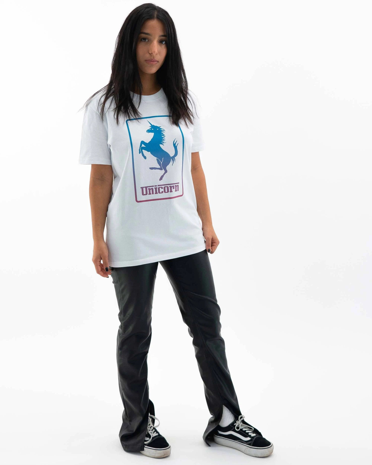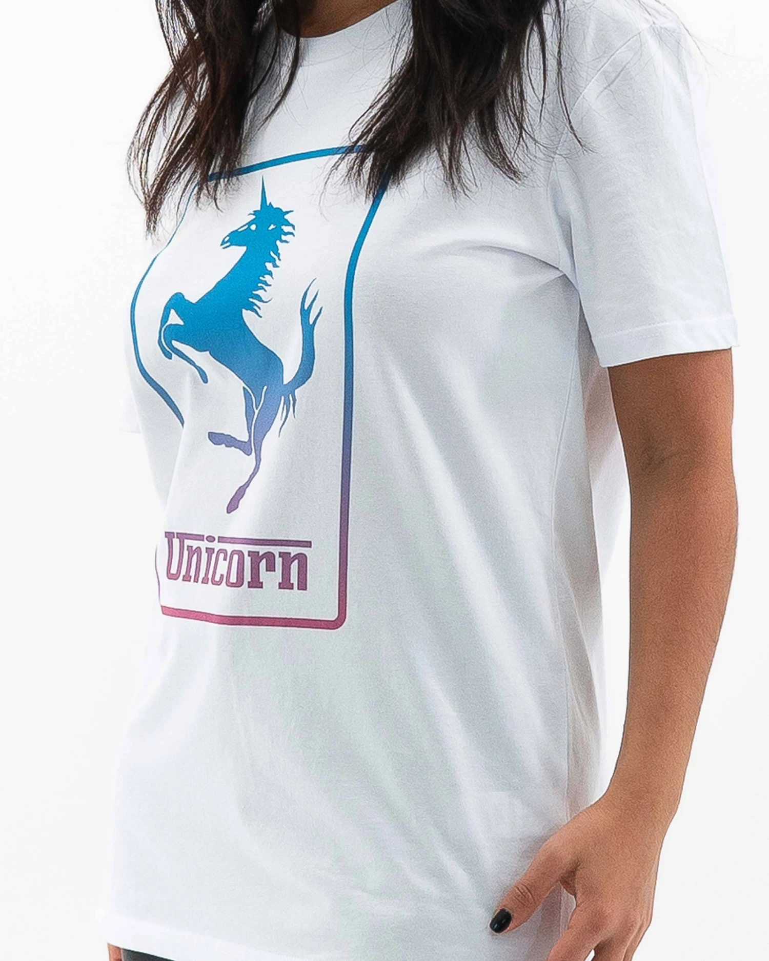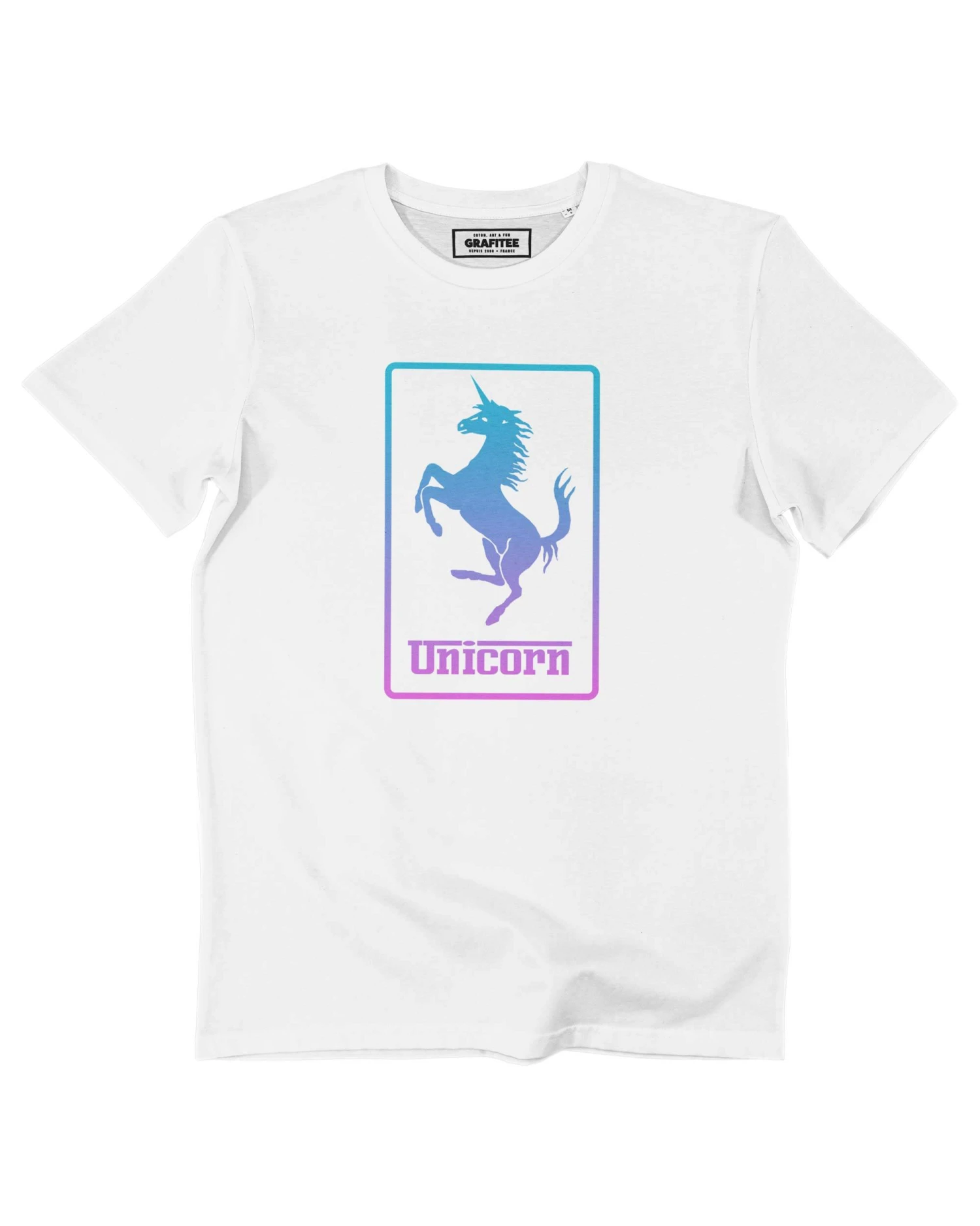 Détournement tout en douceur du logo Ferrari, avec une licorne en lieu et place du cheval cabré. T-shirt Unicorn, tendance et coloré en stock du XS au XXL. Convient aux fans de licornes et de voitures de sport.