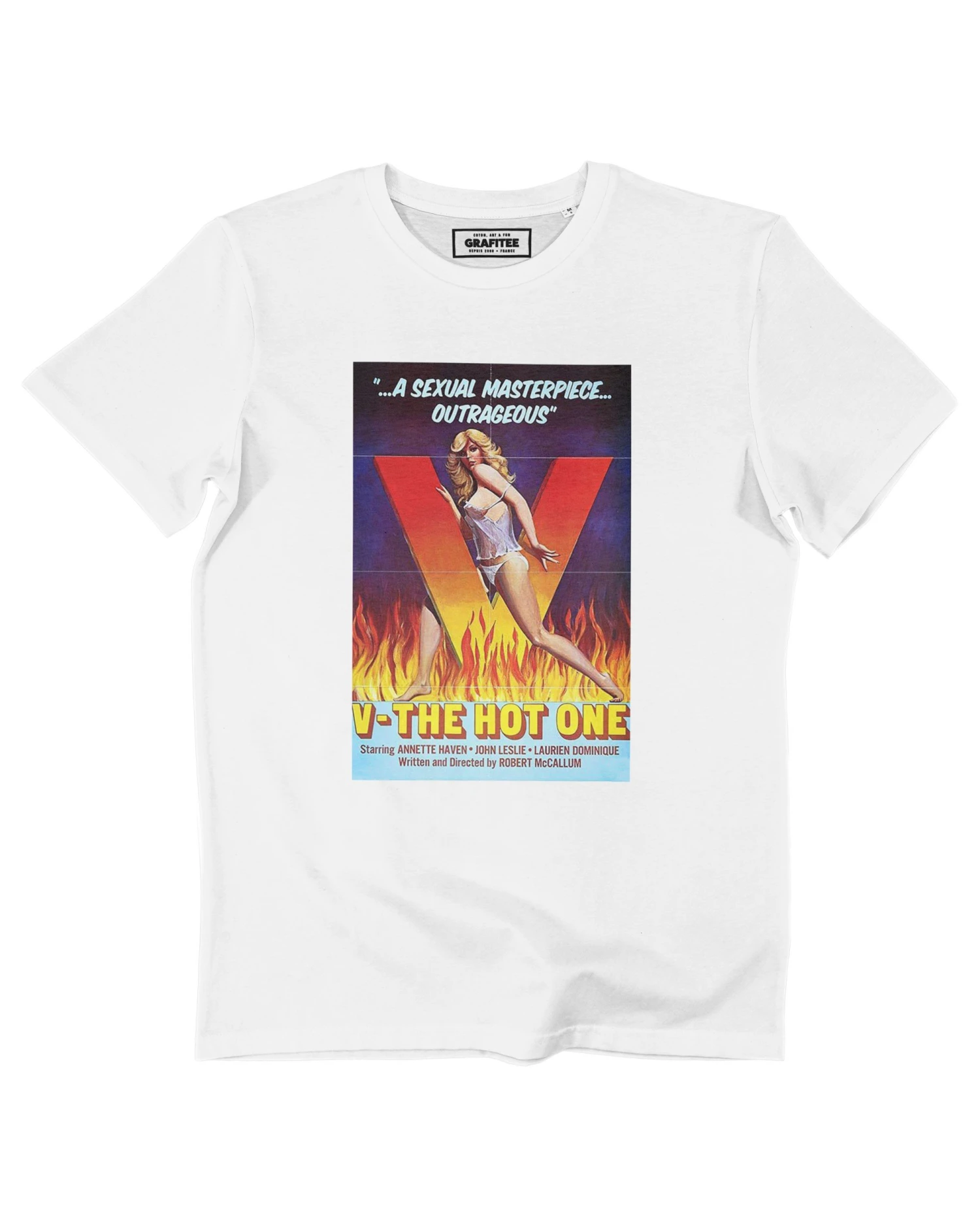 Une femme au foyer qui décide d’explorer la sexualité en devenant une escort girl de luxe, c’est le pitch de V The Hot One, et maintenant en version t-shirt.