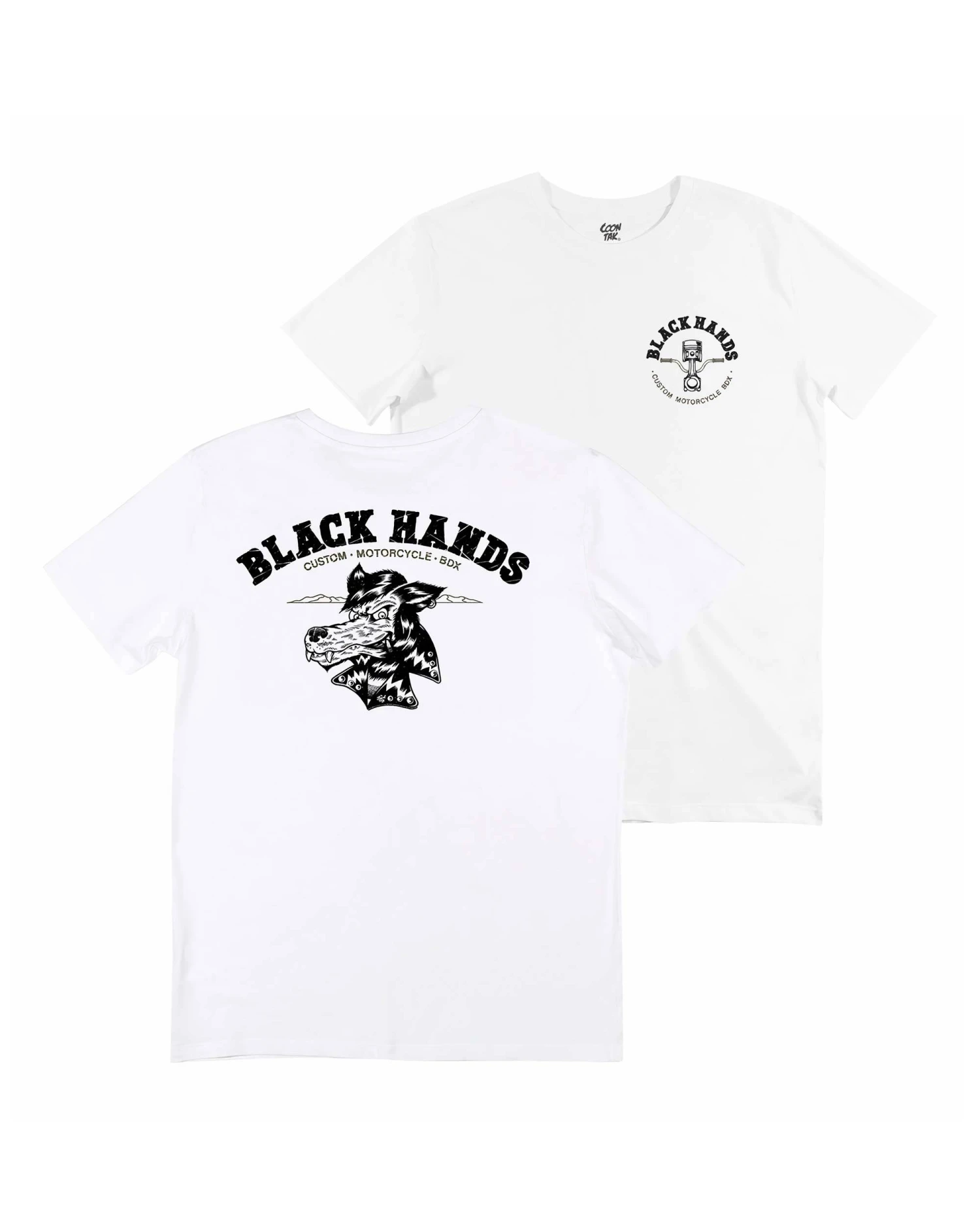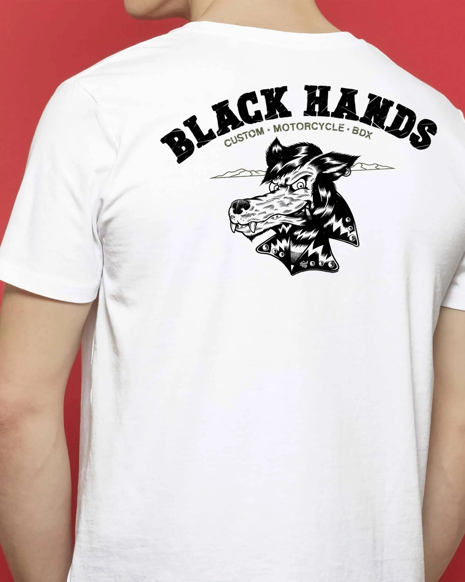 SacrĂ© look pour un sacrĂ© loup motard. L’atelier de moto custom de Bordeaux a son propre t-shirt sur Grafitee.fr.