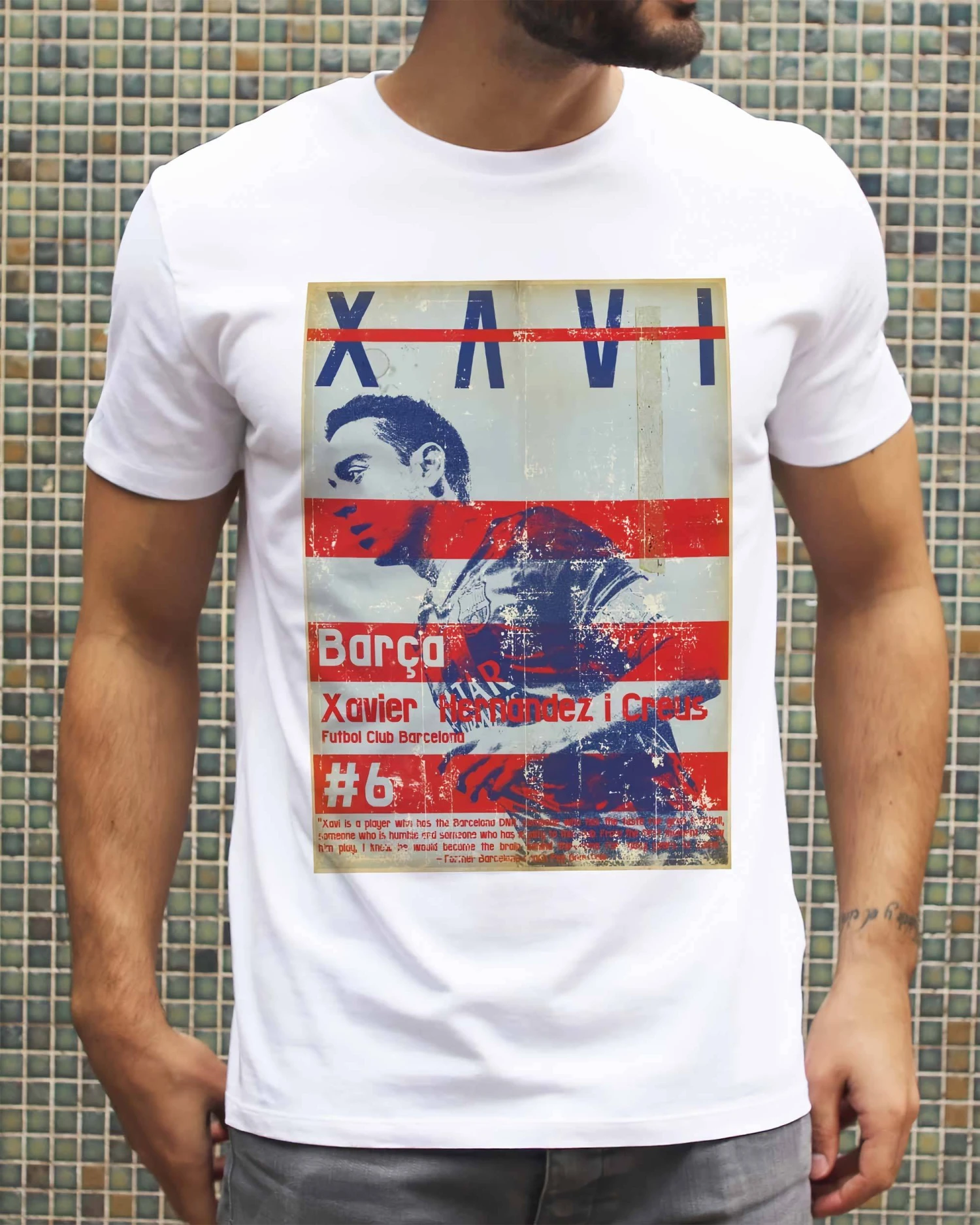 On le retrouve ici à travers une superbe illustration de l’artiste Zoran Lucic, sur un T-shirt aux couleurs du FC Barcelone : rouge et bleu. Tailles du S au 2XL.